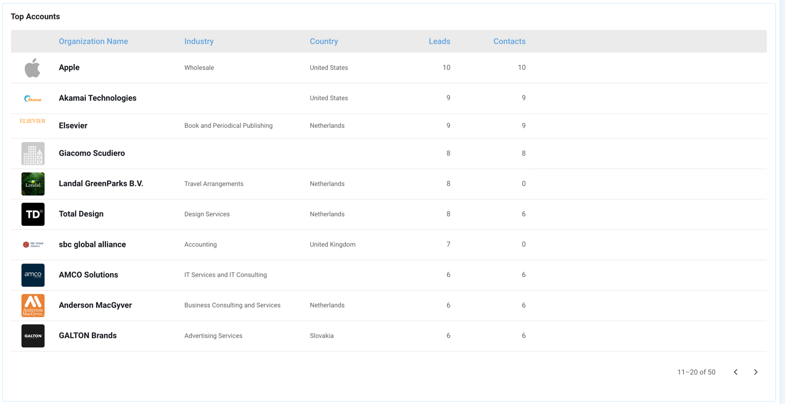 Find out what companies are your top engagers. Features include: