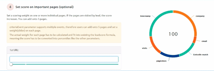 You can already change your leadscore. Now, we're adding more leadscore functionality. With this release, you can define which urls on your website have an impact on leadscore. In other words, leads qualify themselves by showing interest in important pages; pricing or specific product pages. This feature means that when leads visit the pages you tell us are important - they receive a higher leadscore, and come to the top of the list, and to your attention.