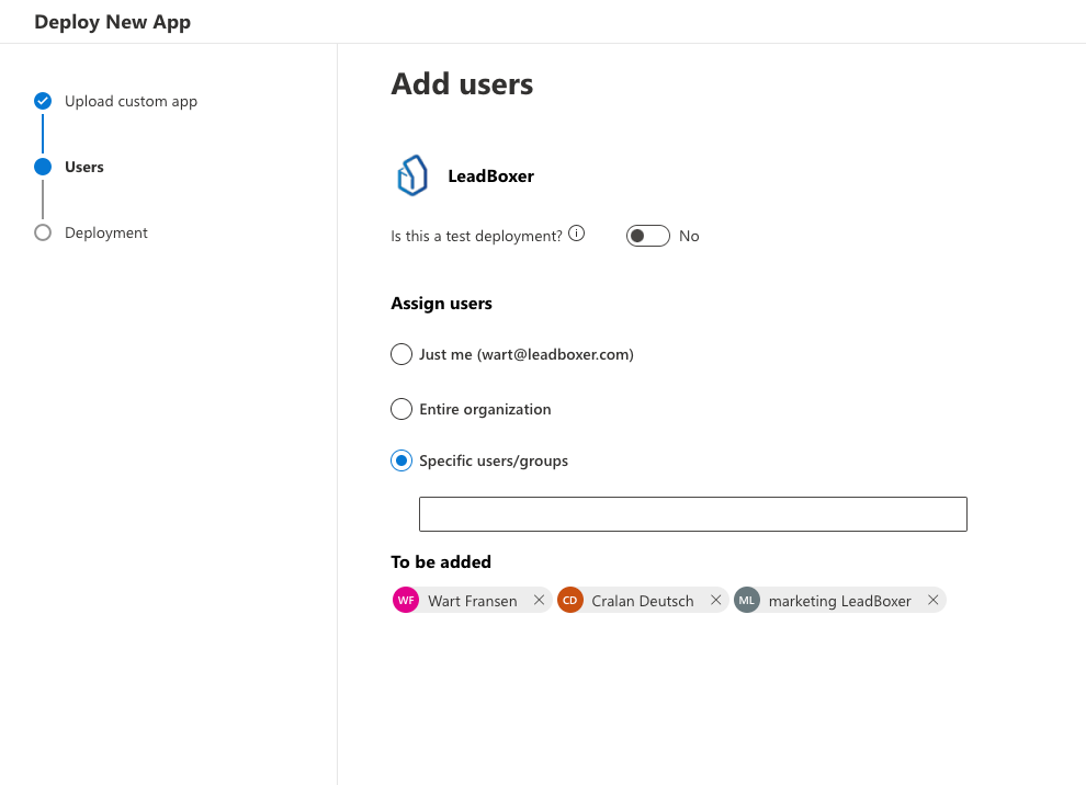 8. Assign users according to your preferences. We recommend Specific users/groups.