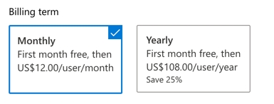 Once logged in, select your Plan & Term. You can choose monthly or yearly billing. The first month is free and you can cancel at any time.