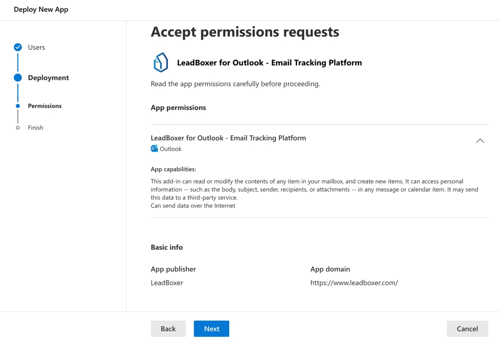 Search for LeadBoxer and select the LeadBoxer for Outlook - Email Tracking Platform and click the Get it now button