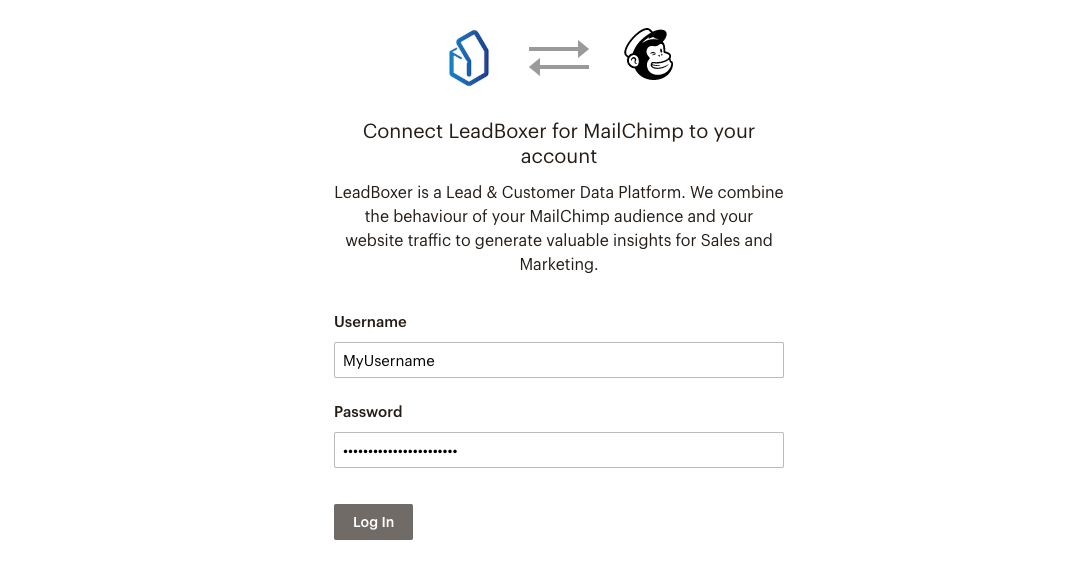 You will then be redirected to Mailchimp where you will need to authorise access by providing your Mailchimp (admin) credentials.